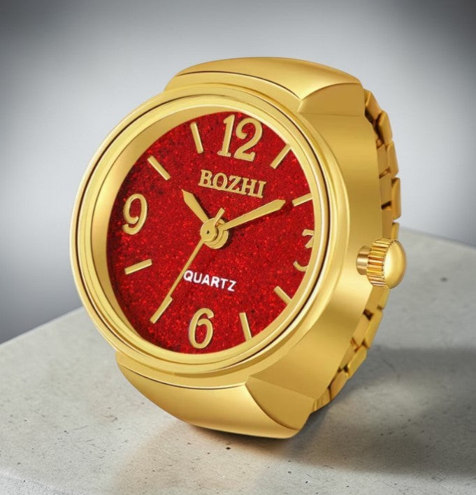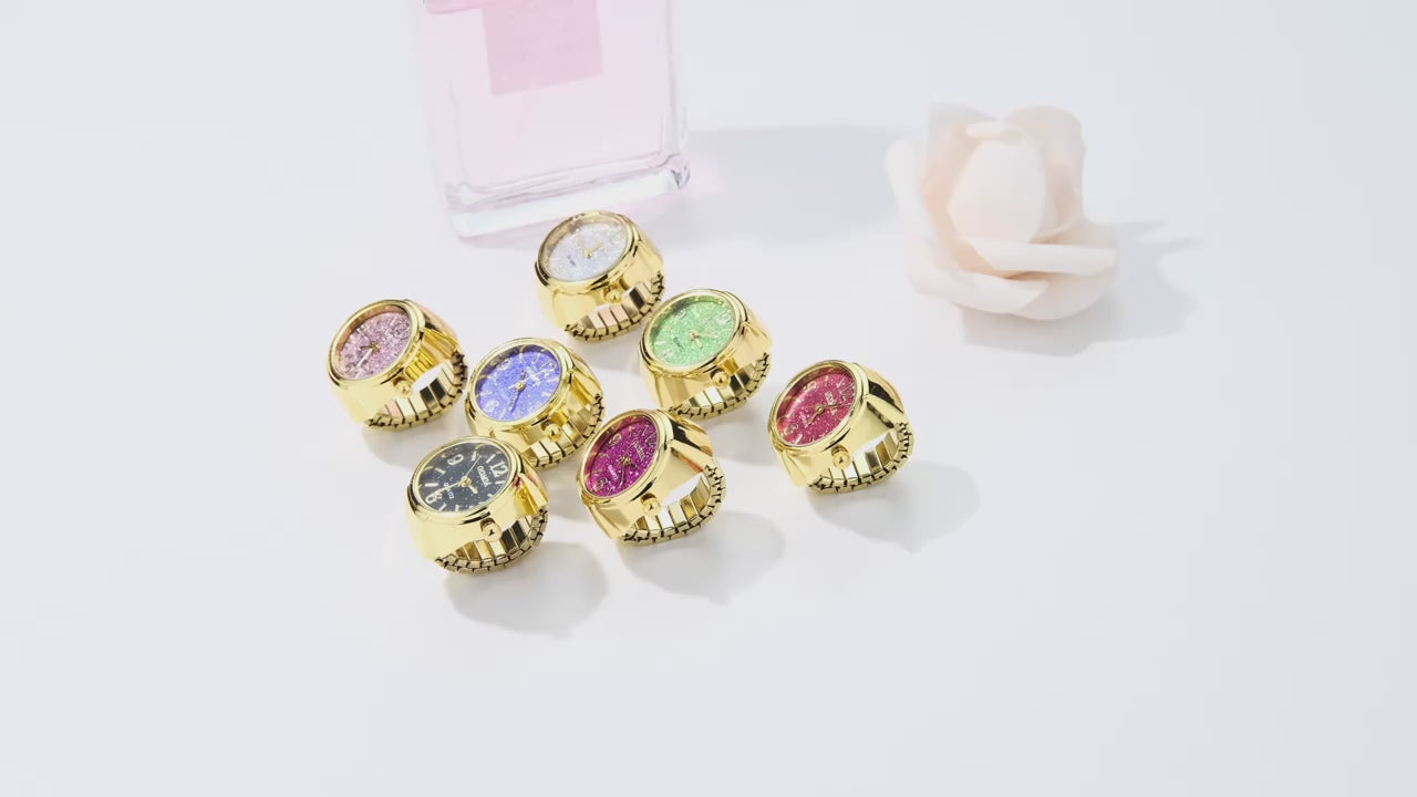 Designed with a gorgeous glitter dial and gold-tone band, these watch rings bring elegance, fun, and convenience all in one piece. Whether you're dressing up for a night out or adding flair to your daily outfit, this eye-catching ring watch is sure to turn heads.