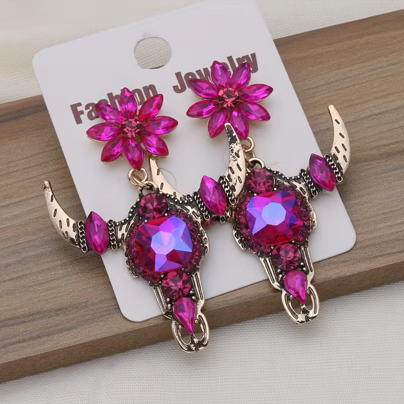 These Bling Bullhead Stud Earrings are the perfect mix of cowgirl charm and glam sparkle — lightweight, eye-catching, and bold enough to make any outfit pop.