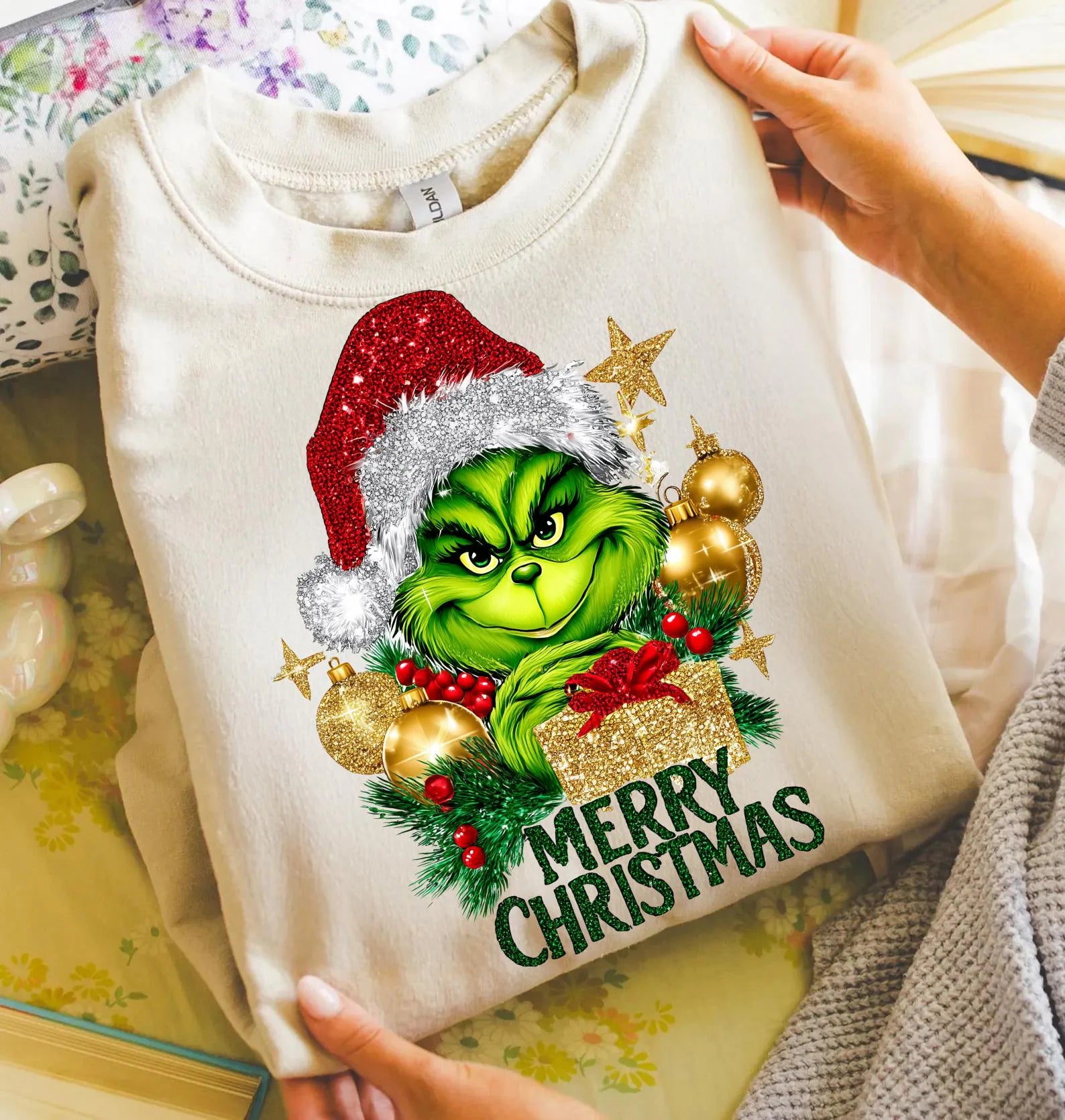 Merry Christmas Glitter Grinch Sweatshirt