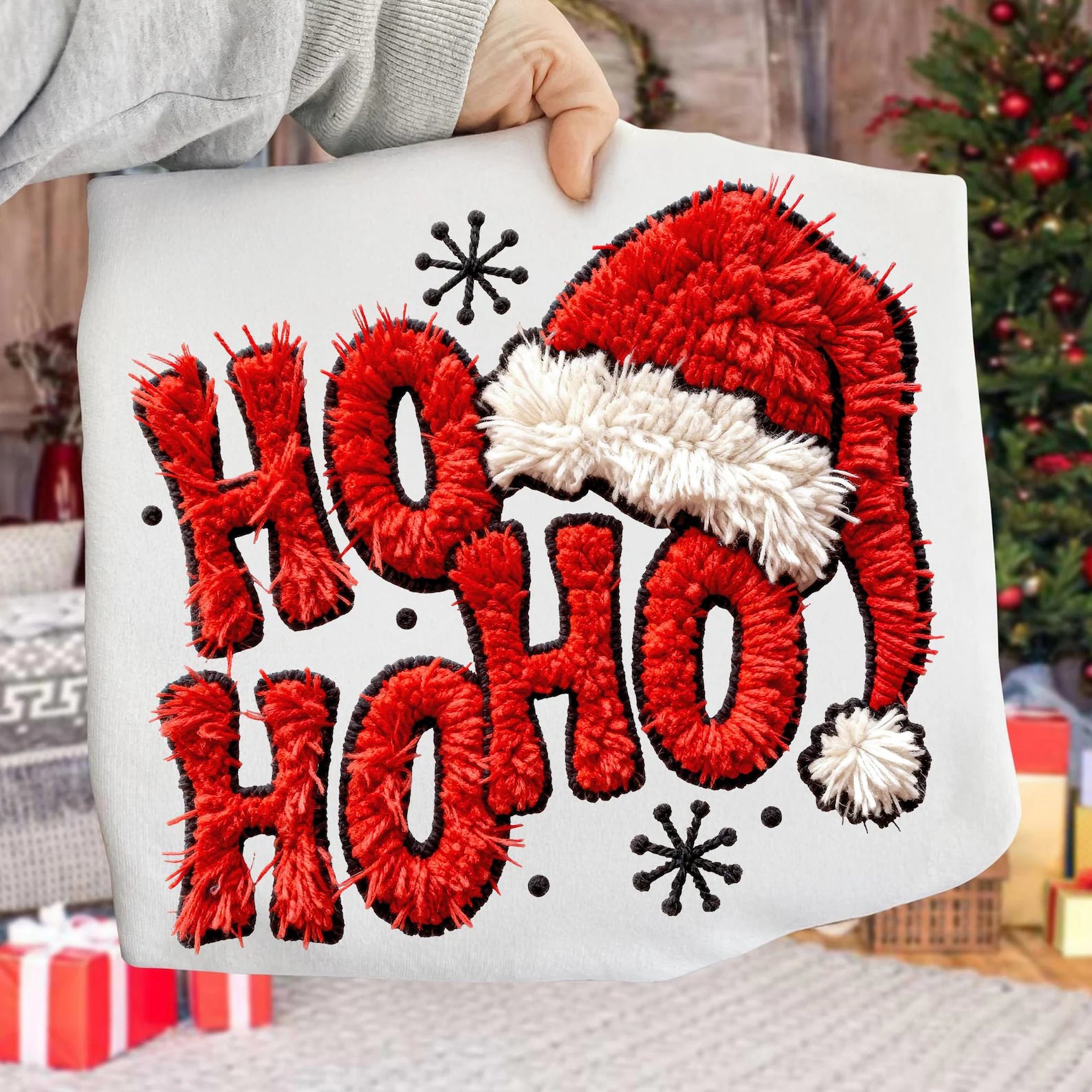 Textured “HO HO HO” Chenille T~Shirt